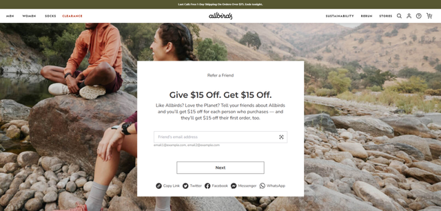 The pop-up should highlight the benefits of referring friends, with a simple “Join Now” button for easy access. - Banner: A fixed banner at the top or bottom of the page keeps the referral program visible as customers browse. It’s ideal for ongoing programs, offering constant reminders to refer friends while shopping