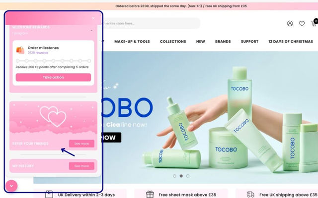 Integrating your referral program with existing loyalty pages allows customers to seamlessly track their progress, see available rewards, and easily refer friends—all from one location.