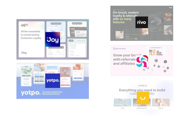 | Features | Joy Loyalty Program | Smile.io | Yotpo | Referral Candy | Rivo |