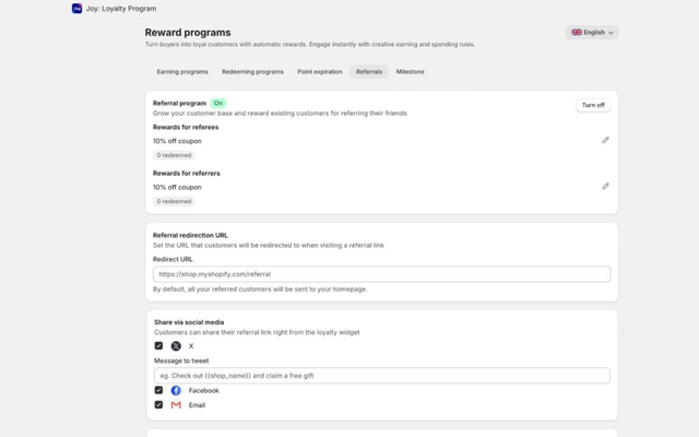 However, Shopify doesn’t have built-in referral program features, but you can easily set one up using third-party apps like Joy Rewards & Loyalty Program.